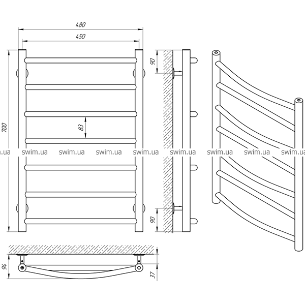 • Диаметр: стойка Ø30, толщина 2 мм; перемычка Ø20, толщина 1,5 мм
