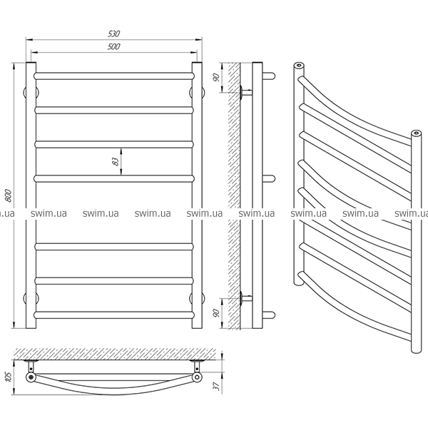 Полотенцесушитель Laris Микс П8 71207035bronze, 500х800 мм
