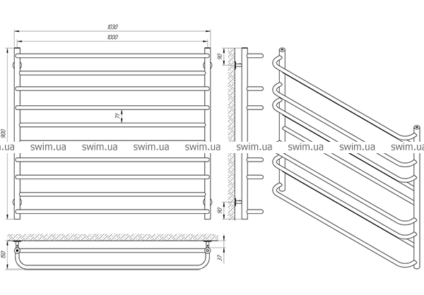 → Полотенцесушитель Laris Практик П10 71207667bronze, 1000х900 мм
