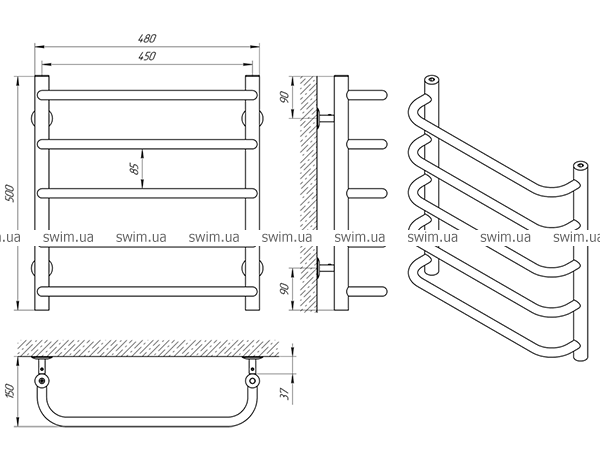 → Полотенцесушитель Laris Стандарт П5 71207060bronze, 450х500 мм