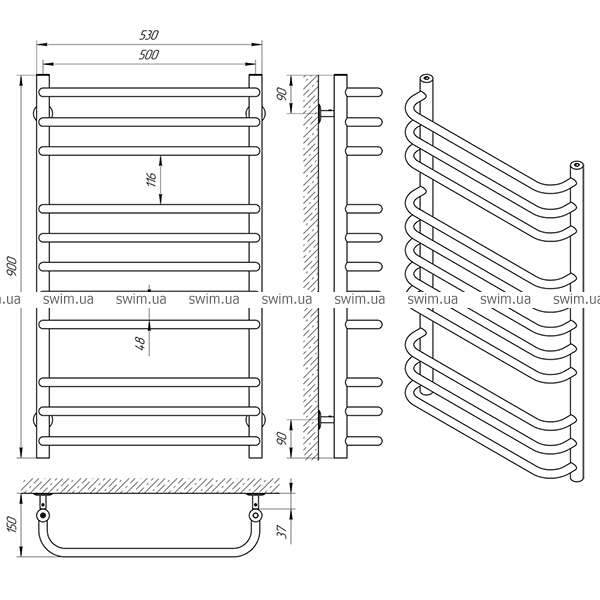 - Полотенцесушитель - 1 шт