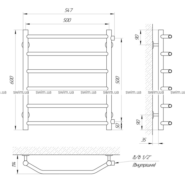 - Резьба: 1/2 " внутренняя (боковое подключение)