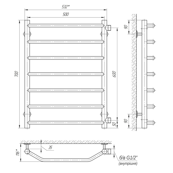→ Полотенцесушитель Laris Виктория П7 71207478bronze, 500х700 мм