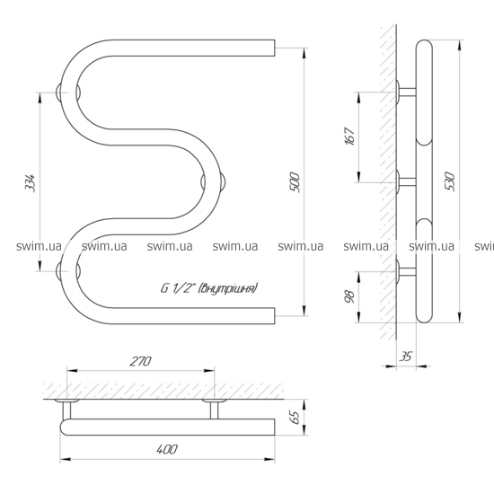 Полотенцесушитель Laris Змеевик 30 РС3 71207208, 400х500 мм