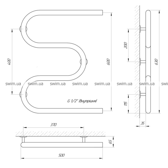 Полотенцесушитель Laris Змеевик 30 РС3 71207224, 500х600 мм