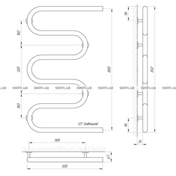 Полотенцесушитель Laris Змеевик 32 РС5 71207231, 500х800 мм