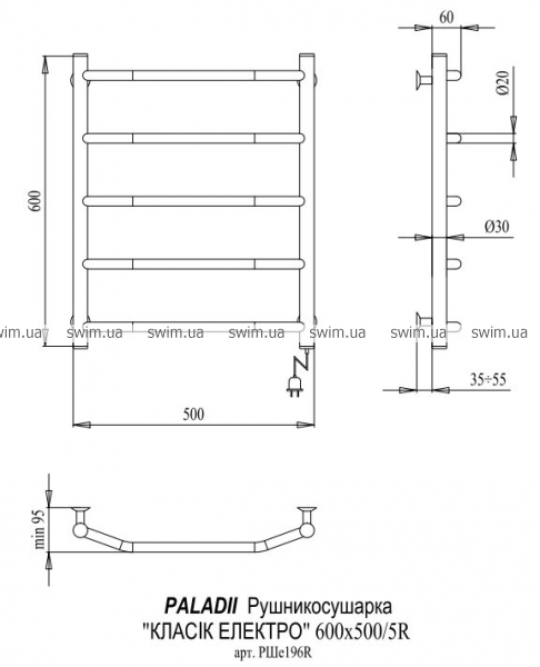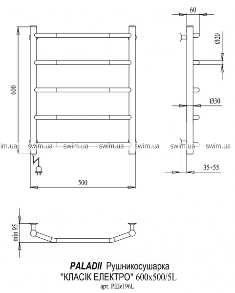 Полотенцесушитель Paladii Классик электро РШе196x 600x500