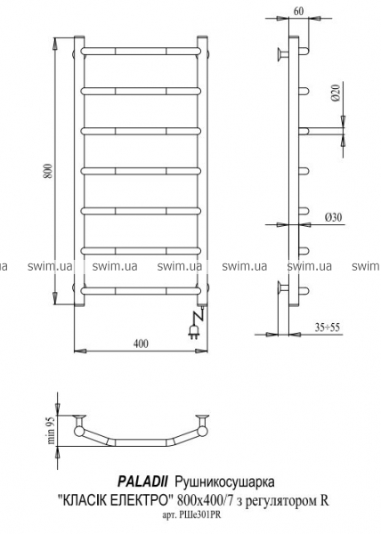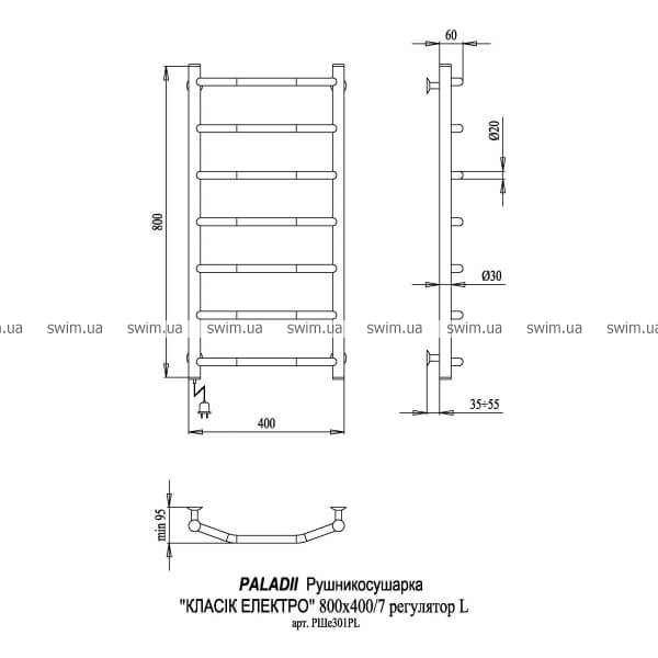 Полотенцесушитель Paladii Классик электро РШе301Рx 800x400