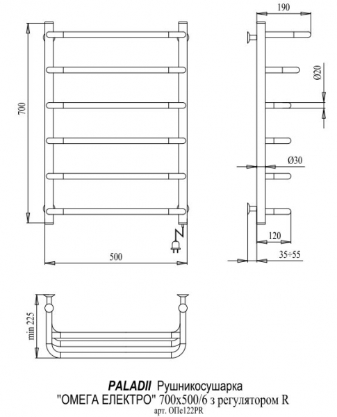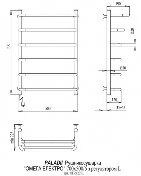 Основные характеристики электрических полотенцесушителей серии ОМЕГА:
