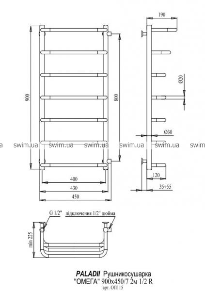 Полотенцесушитель Paladii Омега ОП115 900х450 мм