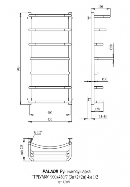 Полотенцесушитель Paladii Триумф ТД021 900х430 мм