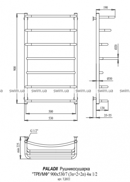 Полотенцесушитель Paladii Триумф ТД022 900х530 мм