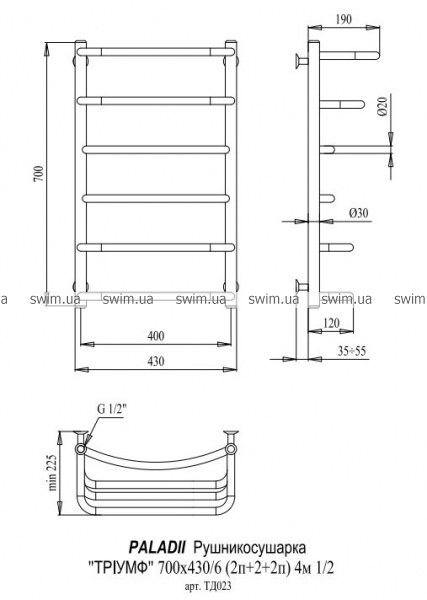 Полотенцесушитель Paladii Триумф ТД023 700х430 мм