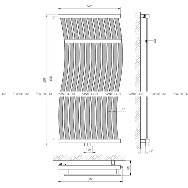 → Полотенцесушитель с полками Laris Фрирайд П11 73207336gold, 500х1000 мм