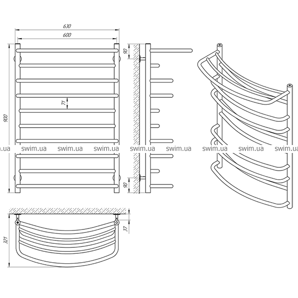 → Полотенцесушитель с полкой Laris Евромикс П10 71207671, 600х900 мм