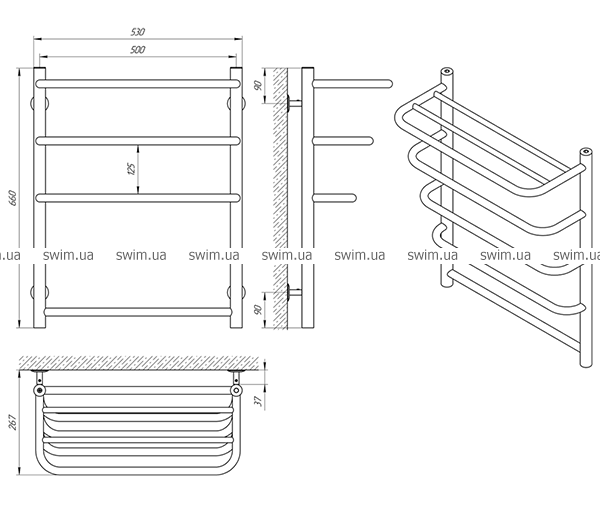 → Полотенцесушитель с полкой Laris Стандарт П5 71207570bronze, 500х660 мм