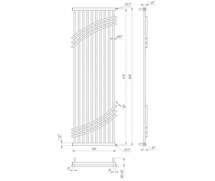 Водяной полотенцесушитель Бордо 1600х500 с межосевым расстоянием для подключения 1570 мм, диаметр подключения G 1/2'' состоит из 10 стоек и 6 дуг ребер. Полотенцесушитель Бордо производственного предприятия Mario изготовлен из нержавеющей стали АІSI 304 может быть оборудован 600W электрическим теном.