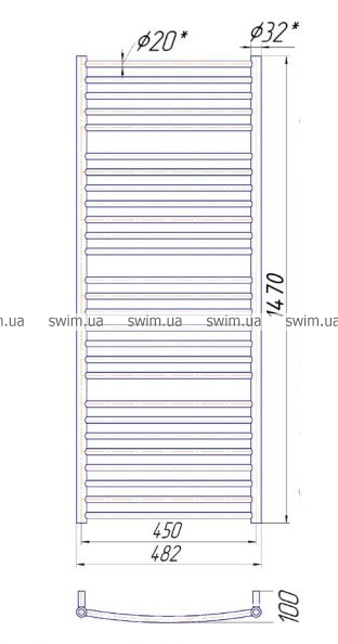 Водяной полотенцесушитель Феникс 1470х450 с межосевым расстоянием для подключения 450 мм, диаметр подключения G 1/2'' состоит из 27 ребер. Полотенцесушитель Феникс производственного предприятия Mario изготовлен из нержавеющей стали АІSI 304 может быть оборудован 600W электрическим теном.