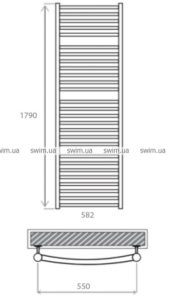 Водяной полотенцесушитель Феникс 1790х550 с межосевым расстоянием для подключения 550 мм, диаметр подключения G 1/2'' состоит из 33 ребер. Полотенцесушитель Феникс производственного предприятия Mario изготовлен из нержавеющей стали АІSI 304 может быть оборудован 600W электрическим теном.