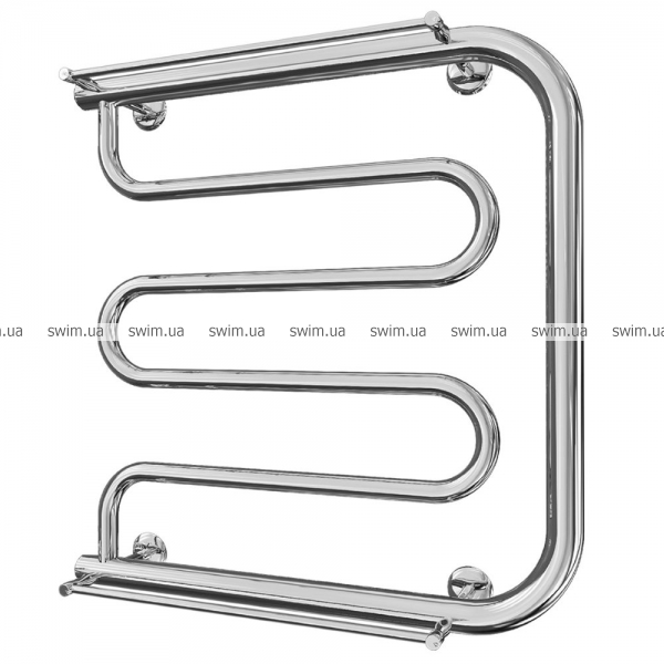Водяной полотенцесушитель Фокстрот 500х500 с межосевым расстоянием для подключения 500 мм, диаметр подключения G 1/2'' состоит из 3 гиба ребер. Полотенцесушитель Фокстрот производственного предприятия Mario изготовлен из нержавеющей стали АІSI 304.