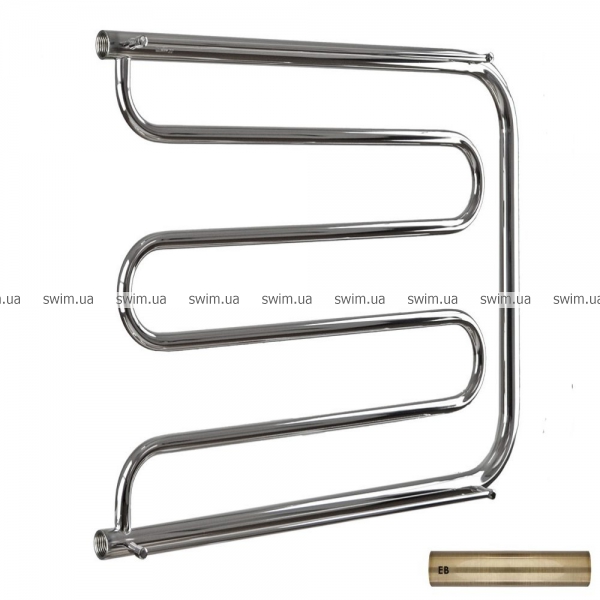 Водяной полотенцесушитель Фокстрот 500х600 с межосевым расстоянием для подключения 500 мм, диаметр подключения G 1/2'' состоит из 3 гиба ребер. Полотенцесушитель Фокстрот производственного предприятия Mario изготовлен из нержавеющей стали АІSI 304.