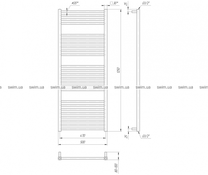 Водяной полотенцесушитель Гера 1250х470 с межосевым расстоянием для подключения 470 мм, диаметр подключения G 1/2'' состоит из 25 ребер. Полотенцесушитель Гера производственного предприятия Mario изготовлен из нержавеющей стали АІSI 304 может быть оборудован 600W электрическим теном.