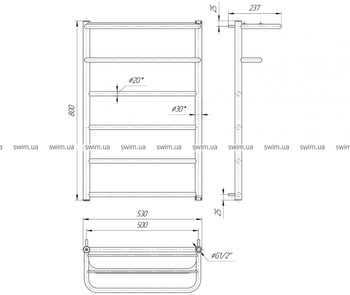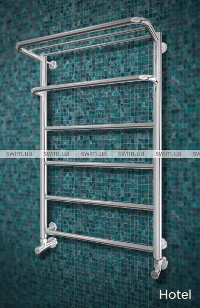 Водяной полотенцесушитель Hotel 800х530 с межосевым расстоянием для подключения 500 мм, диаметр подключения G 1/2'' состоит из 6 ребер. Полотенцесушитель Hotel производственного предприятия Mario изготовлен из нержавеющей стали АІSI 304 может быть оборудован 200W электрическим теном.