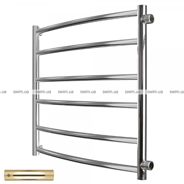 Водяной полотенцесушитель Классик Б/П 1" 600х500 с межосевым расстоянием для подключения 500мм, диаметр подключения G 1'' состоит из 6 ребер. Полотенцесушитель Классик Б/П 1" производственного предприятия Mario изготовлен из нержавеющей стали АІSI 304.