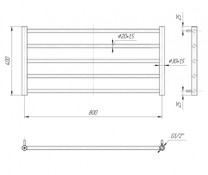 Водяной полотенцесушитель Классик Сити 400х830 с межосевым расстоянием для подключения 800 мм, диаметр подключения G 1/2'' состоит из 5 ребер. Полотенцесушитель Классик Сити производственного предприятия Mario изготовлен из нержавеющей стали АІSI 304 может быть оборудован 300W электрическим тэном.