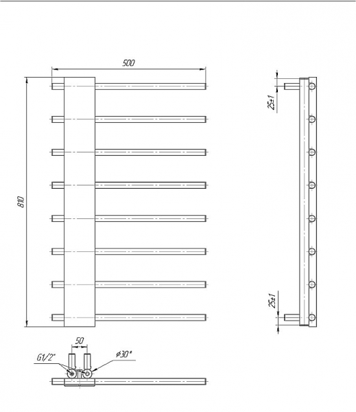 Водяной полотенцесушитель Комфорт 810х500 с межосевым расстоянием для подключения 50 мм, диаметр подключения G 1/2'' состоит из 8 ребер. Полотенцесушитель Комфорт производственного предприятия Mario изготовлен из нержавеющей стали АІSI 304 может быть оборудован 300W электрическим теном.
