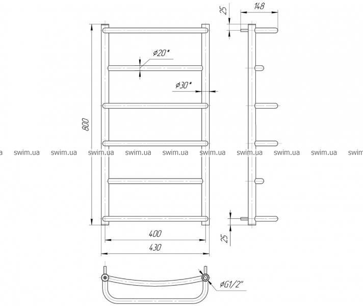 Водяной полотенцесушитель Люкс HP 800х430 с межосевым расстоянием для подключения 400 мм, диаметр подключения G 1/2'' состоит из 6 ребер. Полотенцесушитель Люкс HP производственного предприятия Mario изготовлен из нержавеющей стали АІSI 304 может быть оборудован 200W электрическим теном.
