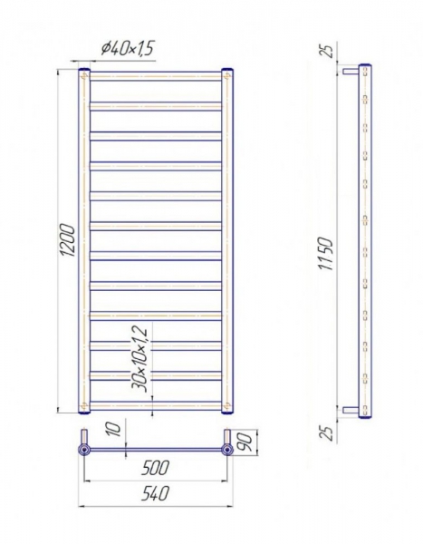 Водяной полотенцесушитель Модена 1200х540 с межосевым расстоянием для подключения 500 мм, диаметр подключения G 1/2'' состоит из 12 ребер. Полотенцесушитель Модена производственного предприятия Mario изготовлен из нержавеющей стали АІSI 304 может быть оборудован 600W электрическим теном.