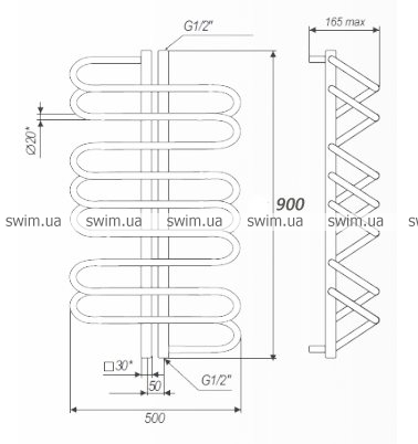Водяной полотенцесушитель Монако 900х500 с межосевым расстоянием для подключения 50 мм, диаметр подключения G 1/2'' состоит из 7 ребер. Полотенцесушитель Монако производственного предприятия Mario изготовлен из нержавеющей стали АІSI 304 может быть оборудован 300W электрическим теном.
