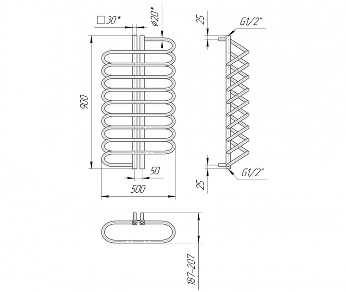 Полотенцесушитель водяной Марио Палермо 900x500 4820111353163 хром