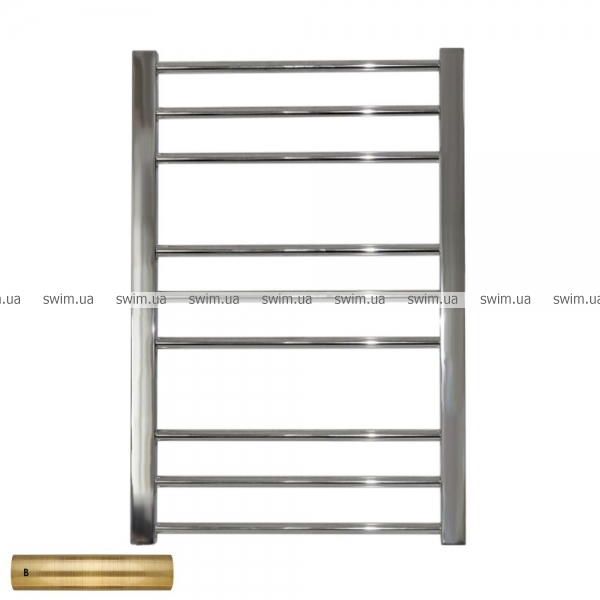 Водяной полотенцесушитель Премиум Классик 800х500 с межосевым расстоянием для подключения 500 мм, диаметр подключения G 1/2'' состоит из 9 ребер. Полотенцесушитель Премиум Классик производственного предприятия Mario изготовлен из нержавеющей стали АІSI 304 может быть оборудован 300W электрическим теном.