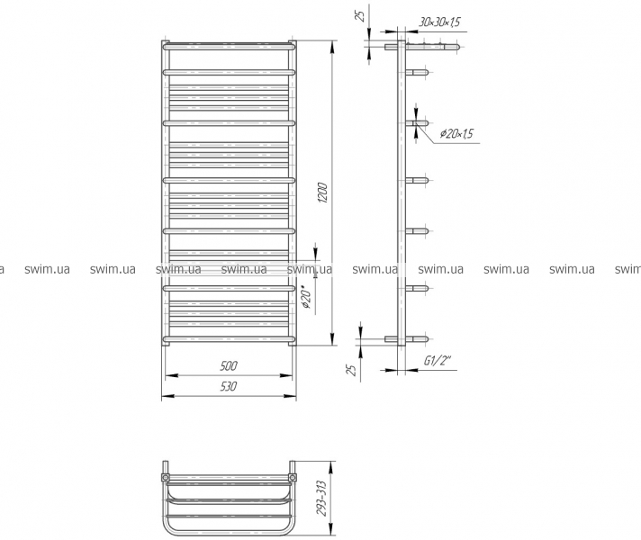 Водяной полотенцесушитель Премиум Люксор 1200х530 с межосевым расстоянием для подключения 500 мм, диаметр подключения G 1/2'' состоит из 22 ребер. Полотенцесушитель Премиум Люксор производственного предприятия Mario изготовлен из нержавеющей стали АІSI 304 может быть оборудован 600W электрическим теном.