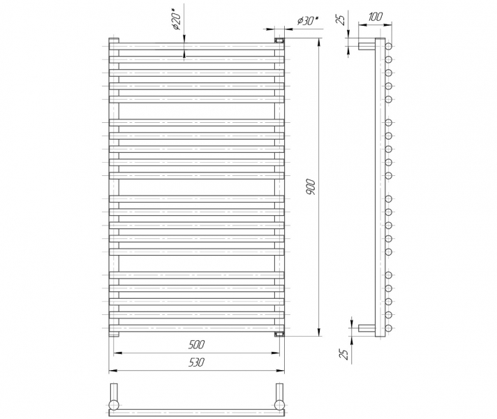 Водяной полотенцесушитель Премиум Турин 900х500 с межосевым расстоянием для подключения 500 мм, диаметр подключения G 1/2'' состоит из 20 ребер. Полотенцесушитель Премиум Турин производственного предприятия Mario изготовлен из нержавеющей стали АІSI 304 может быть оборудован 600W электрическим теном.