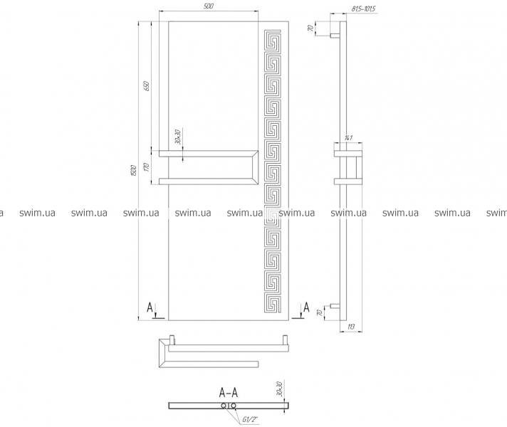 Водяной полотенцесушитель Родос 1500х600 с межосевым расстоянием для подключения 50 мм, диаметр подключения G 1/2'' состоит из 15 ребер. Дизайн-радиатор Родос производственного предприятия Mario изготовлен из нержавеющей стали АІSI 304.