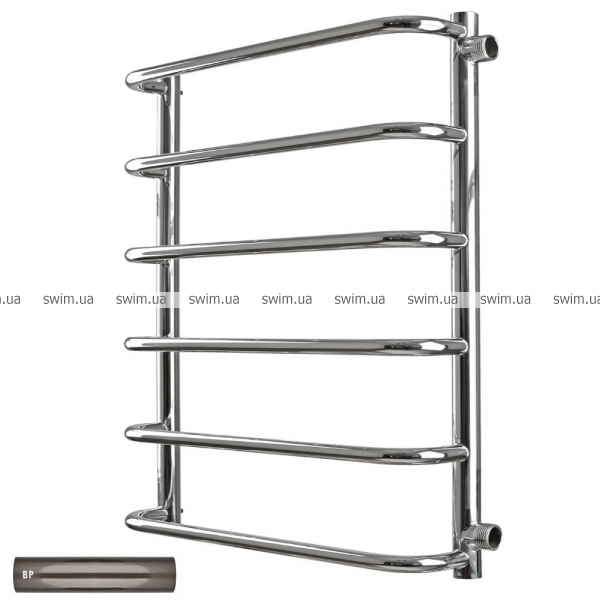 Водяной полотенцесушитель Стандарт Б/П 1/2" 600х500 с межосевым расстоянием для подключения 500мм, диаметр подключения G 1'' состоит из 6 ребер. Полотенцесушитель Стандарт Б/П 1" производственного предприятия Mario изготовлен из нержавеющей стали АІSI 304.