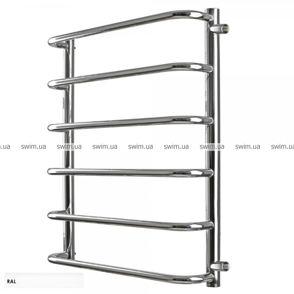 Водяной полотенцесушитель Стандарт Б/П 1/2" 600х500 с межосевым расстоянием для подключения 500мм, диаметр подключения G 1/2'' состоит из 6 ребер. Полотенцесушитель Стандарт Б/П 1/2" производственного предприятия Mario изготовлен из нержавеющей стали АІSI 304.