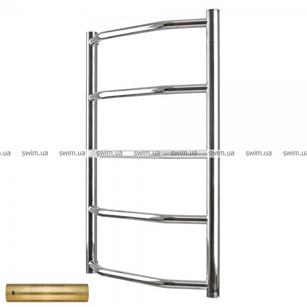 Водяной полотенцесушитель Трапеция HP 650х430 с межосевым расстоянием для подключения 400 мм, диаметр подключения G 1/2'' состоит из 5 ребер. Полотенцесушитель Трапеция HP производственного предприятия Mario изготовлен из нержавеющей стали АІSI 304 может быть оборудован 100W электрическим теном.