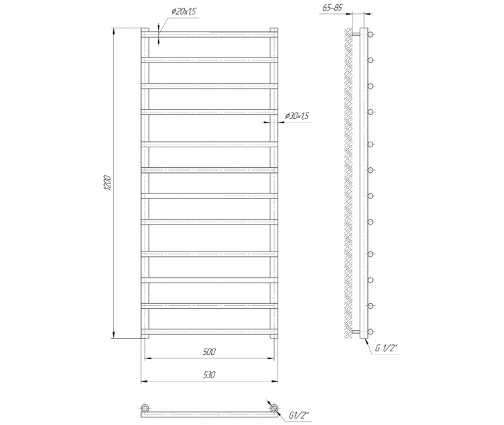 Водяной полотенцесушитель Турин 1200х500 с межосевым расстоянием для подключения 500 мм, диаметр подключения G 1/2'' состоит из 12 ребер. Полотенцесушитель Турин производственного предприятия Mario изготовлен из нержавеющей стали АІSI 304 может быть оборудован 600W электрическим теном.