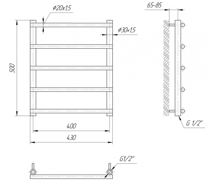 Водяной полотенцесушитель Турин 500х400 с межосевым расстоянием для подключения 400 мм, диаметр подключения G 1/2'' состоит из 5 ребер. Полотенцесушитель Турин производственного предприятия Mario изготовлен из нержавеющей стали АІSI 304 может быть оборудован 100W электрическим теном.