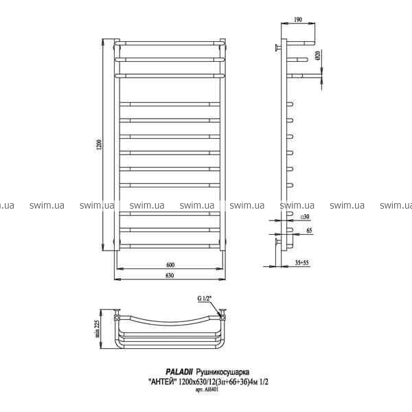 Полотенцесушитель водяной Paladii Антей АН401 1200x630/12
