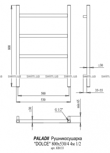 Полотенцесушитель водяной Paladii Dolce КВ133 800x530/4
