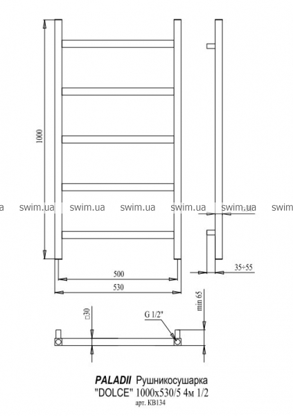 Полотенцесушитель водяной Paladii Dolce КВ134 1000x530/5