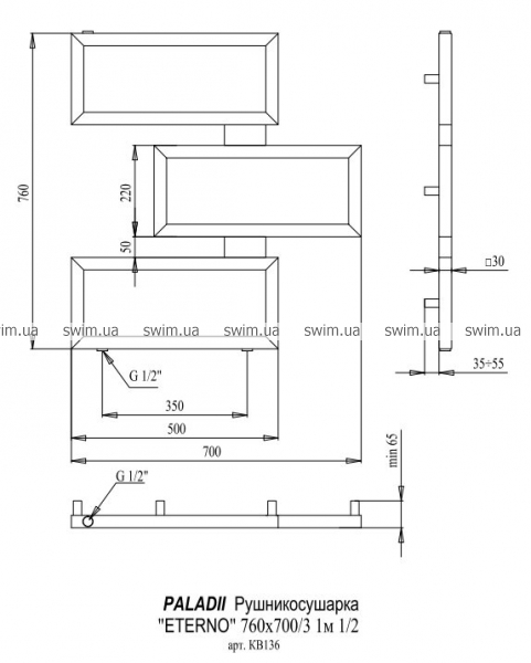 Полотенцесушитель водяной Paladii Eterno КВ136 760x700/3