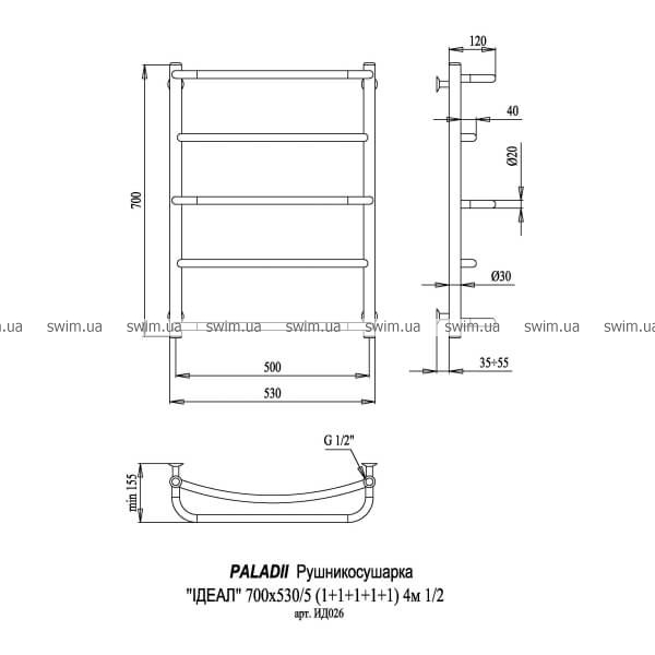 Полотенцесушитель водяной Paladii Идеал ИД026 700x530/5