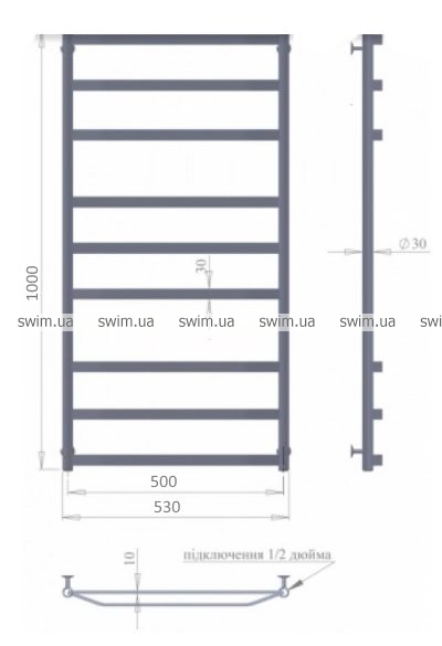 - Стойка: Ø30 мм, толщина 1,5 мм