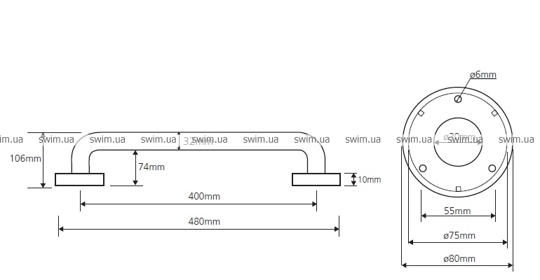 - Длина поручня: 400 мм